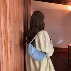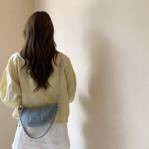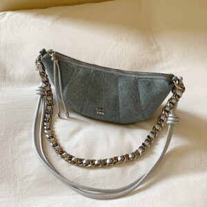 Túi xách CHIO2ND chính hãng, túi xách đeo vai, đeo chéo dáng vỏ sò chất denim mềm mại, phối dây xích thời trang size 21 – CO087